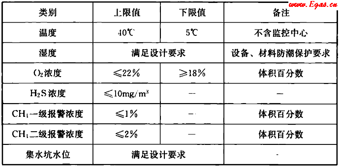 5.6.4 環(huán)境與設(shè)備監(jiān)控系統(tǒng)環(huán)境參數(shù)檢測(cè)內(nèi)容、報(bào)警設(shè)定值應(yīng)符合現(xiàn)行國家標(biāo)準(zhǔn)《城鎮(zhèn)綜合管廊監(jiān)控與報(bào)警系統(tǒng)工程技術(shù)標(biāo)準(zhǔn)》GB/T 51274和《密閉空間作業(yè)職業(yè)危害防護(hù)規(guī)范》GBZ/T 205的規(guī)定。主要環(huán)境參數(shù)報(bào)警設(shè)定值應(yīng)符合表5.6.4的規(guī)定。