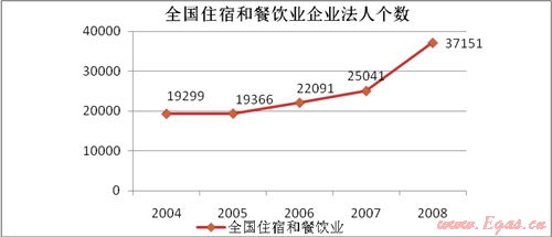 從國家統(tǒng)計(jì)局網(wǎng)站上了解到2008年我國從事住宿和餐飲的企業(yè)法人有37151個(gè),全國餐飲業(yè)營業(yè)額已達(dá)到4824億元,每年的復(fù)合增長率達(dá)到20%。