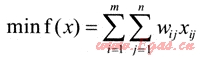 假設(shè)有m個外來氣源點(diǎn),n個該城區(qū)燃?xì)夤?yīng)(銷售)點(diǎn)。則令以a1,a2,…am表示各外來氣源點(diǎn)運(yùn)至該市的輸出量,b1,b2,…,bn表示各供應(yīng)(銷售)點(diǎn)的燃?xì)馊菁{量(銷售量),有∑ai=∑bj。xij表示氣源地i運(yùn)往供應(yīng)點(diǎn)j的運(yùn)氣量,wij表示相應(yīng)的單位運(yùn)氣量的運(yùn)輸時間(單位運(yùn)氣量的運(yùn)輸時間因運(yùn)輸方式的不同而改變),如表2所示