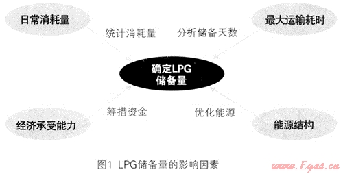 最后也必須統(tǒng)籌考慮城市的能源結(jié)構(gòu)、經(jīng)濟(jì)承受能力。不能讓LPG儲備成為其他新能源建設(shè)和經(jīng)濟(jì)發(fā)展的阻礙與負(fù)擔(dān)。圖1顯示LPG儲備量的影響因素