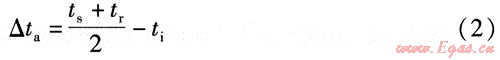 由于對(duì)數(shù)平均傳熱溫差計(jì)算比較復(fù)雜,不適合工程中的簡(jiǎn)便計(jì)算,因此工程中普遍采用簡(jiǎn)便的算術(shù)平均傳熱溫差[7],并得到國內(nèi)外對(duì)流散熱器測(cè)試標(biāo)準(zhǔn)的采用[8、9]。算術(shù)平均傳熱溫差△ta的計(jì)算式為: