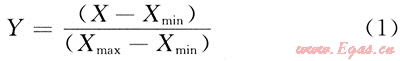 為了使各特征參數(shù)有利于對(duì)比,對(duì)測井曲線進(jìn)行歸一化[10~12]處理,即