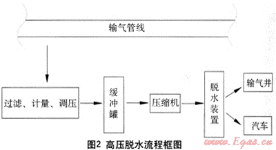 (2) 站址靠近高壓管線,對(duì)于燃?xì)夤?yīng)系統(tǒng)來(lái)說(shuō),壓力就是財(cái)富,可以充分利用高壓管線壓力,從高壓系統(tǒng)中取氣壓縮。由于市政管道內(nèi)天然氣氣質(zhì)良好,而且壓力相對(duì)較高,此情況下高壓脫水、低壓脫水均可采用,具體視項(xiàng)目實(shí)際情況確定。