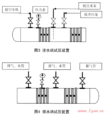 為解決全線注水時排除空氣和泄壓時排除積水問題,試壓裝置與管道連接前預埋注水隔離清管器和掃水隔離清管器,注水清管器采用皮碗式,掃水清管器采用直板式獲混合式,并裝上電子發(fā)射機,通過接收裝置隨時跟蹤清管器所在位置。試壓裝置與管道連接應按相應材質(zhì)的焊接工藝評定及規(guī)程進行焊接,焊好后做100%射線拍片檢驗,合格后方能開始上水試壓。