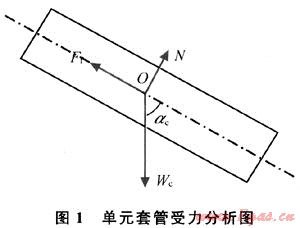 在大斜度井中,對斜井段常規(guī)下入法套管單元受力分析(見圖1),下套管作業(yè)時(shí)井口載荷為[6]: