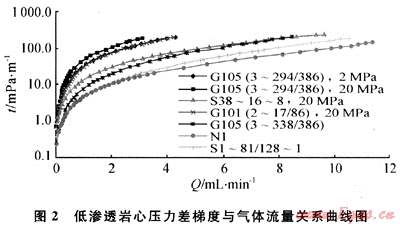 但是就低滲透氣藏氣體滲流的過程中是否存在啟動壓力梯度這一問題,國內(nèi)外的油氣田開發(fā)工作者們還存在很大爭議。為此,對低滲透氣藏氣體滲流是否存在啟動壓力梯度進行了室內(nèi)測試,其測試結果見圖2。