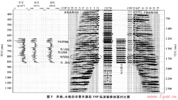 摘要:為滿足實際生產(chǎn)對VSP資料的更高要求,除了加快采集設(shè)備和處理軟件的更新外,激發(fā)方式也是一個不容忽視的重要問題。在川渝地區(qū),長期以來都采用“水炮”作為震源來采集VSP資料,并且認(rèn)為“水炮”激發(fā)方便、資料一致性較好,是VSP資料采集的理想震源,但是在川中、川中-川南過渡帶上用水炮采集的VSP資料往往出現(xiàn)主頻低、頻帶窄、波組不齊全的問題,在很大程度上影響了VSP技術(shù)的應(yīng)用效果和推廣。以BQ205井VSP測井為例,對“井炮”和“水炮”激發(fā)采集的VSP資料從子波一致性、能量的穩(wěn)定性、分辨率的高低等方面進(jìn)行了對比分析,認(rèn)為在低降速帶較厚的地區(qū),“井炮”激發(fā)采集的VSP資料比“水炮”激發(fā)的子波一致性要好、能量的穩(wěn)定性更優(yōu)、抗低頻的能力更強、分辨率更高。這一結(jié)論對四川盆地VSP資料采集及其推廣應(yīng)用具有指導(dǎo)意義。