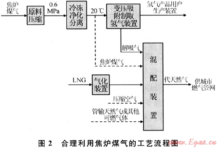將煉焦企業(yè)、氫氣產(chǎn)品用戶與燃氣企業(yè)聯(lián)合起來,先將焦爐煤氣中的氫氣組分分離提純,以提高其附加值,然后將剩余的解吸氣體用于生產(chǎn)代天然氣產(chǎn)品供應城市燃氣管網(wǎng),實現(xiàn)低值產(chǎn)品高值利用。采用這種集成的工藝技術,能夠使各種工況下的能源利用得到最優(yōu)化,是焦爐煤氣綜合利用的發(fā)展方向之一。
