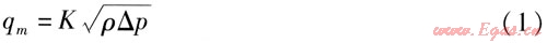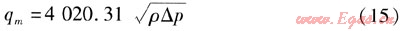 將數(shù)據(jù)qV=3000m3/h,ρn=1.293kg/m3,L=273.15K,pg=5kPa,p0=100kPa,pn=101.32kPa,t=20℃,△p=0.74377kPa代入式(12),可求得:K=4025.3021。