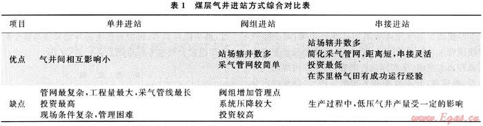 樊莊區(qū)塊煤層氣地面集輸系統(tǒng)的優(yōu)化需要根據(jù)煤層氣井特有的產(chǎn)量、壓力、溫度、井距、組分、產(chǎn)品氣流向、開發(fā)年限以及自然條件等因素綜合考慮確定,優(yōu)化內(nèi)容包括單井進站方式、站場規(guī)模及數(shù)量優(yōu)化,增壓工藝優(yōu)化、壓力系統(tǒng)優(yōu)化,集輸管網(wǎng)結(jié)構(gòu)及管徑優(yōu)化、鋼級選擇優(yōu)化等內(nèi)容。下面重點介紹單井進站方式、增壓工藝及壓力系統(tǒng)的優(yōu)化。