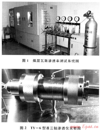 煤的滲透性研究對(duì)于研究瓦斯在煤層中的運(yùn)移非常重要[1~8],煤礦開(kāi)采中的各種瓦斯動(dòng)力現(xiàn)象如煤與瓦斯突出、煤層氣開(kāi)采過(guò)程、瓦斯抽放等均與煤層的滲透性有關(guān)。我國(guó)煤層的滲透率一般為0.1~10mD,僅個(gè)別礦井測(cè)試數(shù)據(jù)達(dá)數(shù)十毫達(dá)西。與常規(guī)天然氣在巖層孔隙內(nèi)呈游離態(tài)的賦存狀態(tài)不同,煤層瓦斯在煤層裂縫系統(tǒng)中是游離狀態(tài),在孔隙和裂隙表面則以吸附狀態(tài)存在且90%以上都被吸附在煤基質(zhì)塊中。當(dāng)煤層溫度升高時(shí),部分吸附瓦斯要解吸出來(lái),變?yōu)橛坞x瓦斯,而溫度降低時(shí),部分游離瓦斯變?yōu)槲酵咚梗簩油咚沟倪@種吸附解吸特性對(duì)煤層滲透性能有重要影響。另外,在煤礦生產(chǎn)過(guò)程中,因采動(dòng)影響,煤層應(yīng)力重新分布,形成應(yīng)力降低區(qū)、集中區(qū)和原始區(qū),應(yīng)力的降低和集中使部分煤體伸張和壓縮變形,煤的滲透性發(fā)生變化,從而影響瓦斯的流動(dòng)。因此,筆者實(shí)驗(yàn)研究了應(yīng)力和溫度影響下煤體的滲流規(guī)律,以期為煤礦瓦斯突出機(jī)理、瓦斯抽放的設(shè)計(jì)和優(yōu)化提供一定的理論參考。
