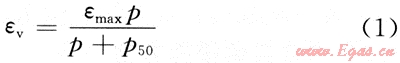 由式(2)進(jìn)行線性擬合,計(jì)算出截距εmax/p50以及斜率1/p50然后,解出εmax和p50,代入式(1),即可得到朗格繆爾型吸附膨脹方程。