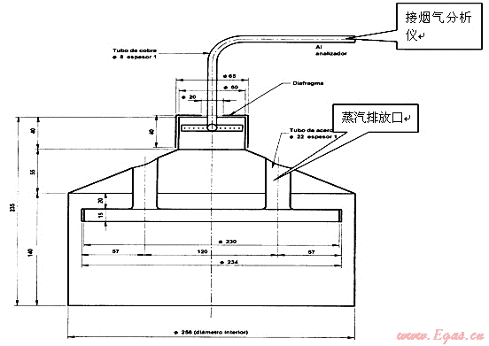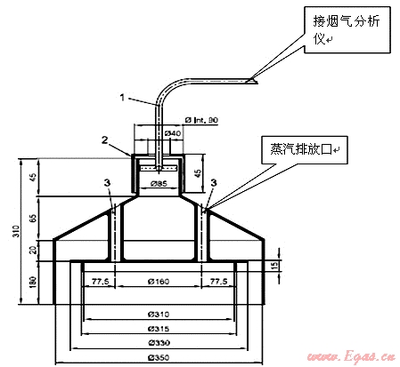 歐洲和南美的取樣器是個半封閉的罩形結(jié)構(gòu),煙氣通道和水蒸氣通道隔離,取樣原理采用我國燃?xì)鉄崴鞯姆绞剑彩前凑諢嶝?fù)荷的分級系列化制造,但是分級較少,不同熱負(fù)荷的燃燒器用鍋直徑和加水量有相同的情況,這種取樣器結(jié)構(gòu)和制作復(fù)雜,消耗材料多,笨重、造價高,對于系列化的結(jié)構(gòu)尺寸不完整,焊接要求高且難以保證,特別對于小功率燃燒器來講高度尺寸顯然不合理,甚至?xí)⒒鹧嫒堪菰谌悠鲀?nèi),造成二次空氣無法進(jìn)入,隨著使用時間增長變形也越來越大,焊接應(yīng)力致使修復(fù)困難。