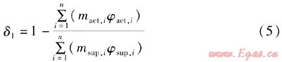 將式(2)~(4)代入式(1),則δ1的計算公式為: