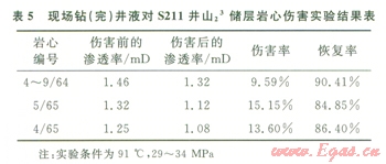 從表5中可以看出,現(xiàn)場鉆井液完井液對山23儲(chǔ)層傷害較低,且傷害后恢復(fù)率可達(dá)84.85%以上,這表明恢復(fù)性良好,具有很好的暫堵保護(hù)作用,兩口井試產(chǎn)都獲高產(chǎn)。