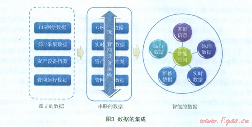 從孤立的數(shù)據(jù)到可以串聯(lián)的數(shù)據(jù)最終達(dá)到共享數(shù)據(jù)中心智能數(shù)據(jù)的目標(biāo),真正實現(xiàn)管網(wǎng)數(shù)據(jù)的完整性、可靠性、關(guān)聯(lián)性、有效性、實時性。從數(shù)據(jù)的集成到?jīng)Q策的智慧,是各個行業(yè)企業(yè)管理信息化發(fā)展的必然途徑和最終目標(biāo)。