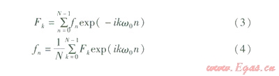 式中,F(ω)稱為f(t)的傅里葉積分,又稱為f(t)的傅里葉變換,f(t)稱為F(ω)的逆變換;t為時域變量,ω為頻域變量;i2=-1。