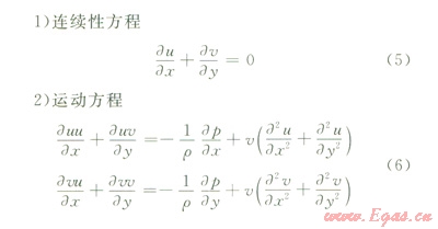 式中u、v分別是速度在x、y方向的分量;p為流體單元體上的壓力;ρ為流體密度,對于不可壓縮流體,可視為常數(shù)。
