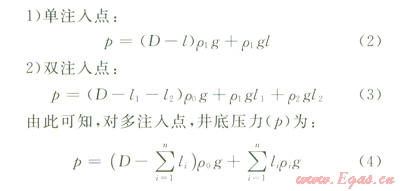 根據(jù)鉆井實際的需要可以設(shè)置一個或多個注入點,這些注入點位置可以固定,也可以隨鉆柱移動而移動。井底壓力(p)為: