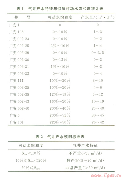 3)可動(dòng)水飽和度小于l0%的氣井,產(chǎn)水量小于