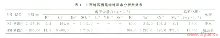 按導(dǎo)電機(jī)理的不同,巖石可分成兩大類(lèi),離子導(dǎo)電的巖石和電子導(dǎo)電的巖石,前者主要靠連通孔隙中所含的溶液的正負(fù)離子導(dǎo)電;后者靠組成巖石顆粒本身的自由電子導(dǎo)電。高阻水層的形成主要受宏觀地質(zhì)背景、微觀孔隙結(jié)構(gòu)、孔隙充填物以及流體性質(zhì)等因素的影響。從電性特征看,川西南部的漢深l井與川西北部的礦2井電阻率都較高,根據(jù)該區(qū)岡版解釋儲(chǔ)層流體具有典型的氣層特征,但測(cè)試結(jié)果卻與測(cè)井解釋存在著較大差異,兩口井均產(chǎn)水。從其水化學(xué)分析結(jié)果看,兩者水的性質(zhì)也存在較大差異,從K2井水分析資料來(lái)看:Cl-含量?jī)Hl 64 mg/L,反映地層水為低礦化度的NaHC03型淡水,而HS1井則為高礦化度的CaCl2型地層水(表1)。雖然兩者都產(chǎn)水,但是由于其水的性質(zhì)不同,因而兩者代表著不同的成藏過(guò)程和地質(zhì)意義。下面分別分析高阻水層的成因。