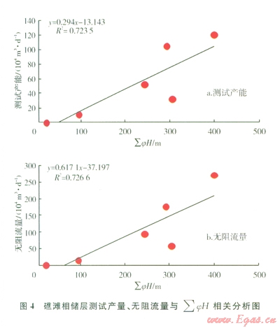 3)礁灘相氣層孔隙度和有效厚度的乘積累加能直接反映出儲層的產(chǎn)能狀況,這將為礁灘相儲層快速便捷地進(jìn)行產(chǎn)能預(yù)測提供技術(shù)依據(jù)。