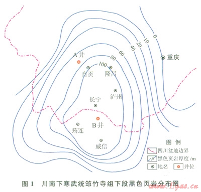 本文以川南筇竹寺組A井、B井兩口鉆井資料為基礎(chǔ)(圖1),借鑒龍馬溪組頁(yè)巖儲(chǔ)集空間定量表征的方法和思路[11],應(yīng)用地質(zhì)統(tǒng)計(jì)分析法、高精度電子顯微鏡、地球物理測(cè)井等技術(shù),依據(jù)頁(yè)巖巖礦、地化、物性等實(shí)驗(yàn)測(cè)試數(shù)據(jù),對(duì)筇竹寺組黑色頁(yè)巖(TOC>1%,下同)基質(zhì)孔隙度構(gòu)成和裂縫發(fā)育狀況進(jìn)行了定量分析和評(píng)價(jià),并通過(guò)與龍馬溪組頁(yè)巖納米級(jí)孔隙系統(tǒng)的對(duì)比分析,對(duì)筇竹寺組頁(yè)巖基質(zhì)孔隙度的影響因素進(jìn)行了探索研究,以期為深化頁(yè)巖氣富集機(jī)理研究提供地質(zhì)依據(jù)。