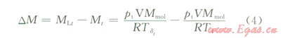 根據(jù)理想氣體狀態(tài)方程pV=nRT可變形為M=pVMmol/RT,得到DM與儲罐溫度的關(guān)系式: