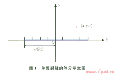 如圖l所示,將裂縫的兩翼分別分成咒單元,每一單元視為一個點匯進行處理。以第j單元的中心坐標來表示左翼裂縫上的第j個點匯的坐標(x1j、y1j):