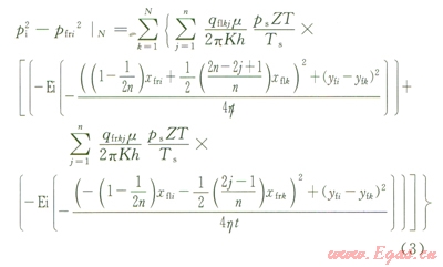 由于水力裂縫的產(chǎn)生,使得地層壓力重新分布。使得地層壓力重新分布。假設(shè)第i條裂縫的左翼和右翼的縫端壓力分別為pflj和pfri。則t時刻可得第i條裂縫的左翼尖端產(chǎn)生的壓降為: