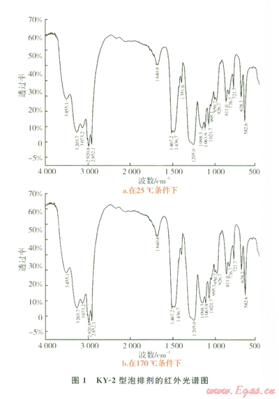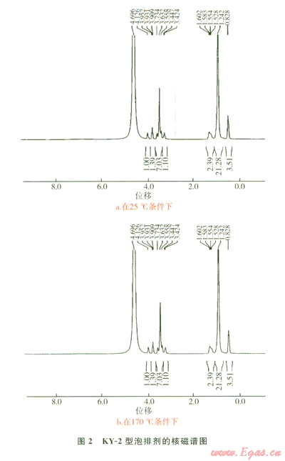 核磁共振和紅外光譜能很好地反映出泡排劑的分子結(jié)構(gòu),同時(shí)還可以由核磁譜圖和紅外譜圖分析出泡排劑所含的基本官能團(tuán),通過這些基本官能團(tuán)推測(cè)泡排劑在