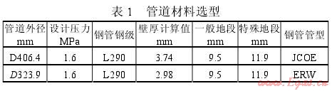 設(shè)計(jì)強(qiáng)度系數(shù)可根據(jù)《城鎮(zhèn)燃?xì)庠O(shè)計(jì)規(guī)范》(GB50028—2006)的分級(jí)地區(qū)選取合理系數(shù),高壓、次高壓管道已采用了較高等級(jí)的材料,焊接系數(shù)取1。如寶雞市天然氣三期利用工程就使用D406.4螺旋縫埋弧焊鋼管和D323.9直縫埋弧焊鋼管,材質(zhì)L290MB,B級(jí)鋼管,設(shè)計(jì)壓力1.6MPa,壁厚根據(jù)管線敷設(shè)所在不同地區(qū)劃分標(biāo)準(zhǔn)(考慮了今后發(fā)展),其選取如表1所示: