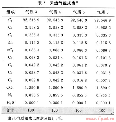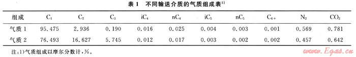 以4種不同組成的天然氣來(lái)分析滿足管道運(yùn)行條件下的氣質(zhì)組成對(duì)減壓波特性的影響,其組成如表2所示。