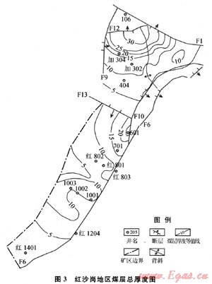紅沙崗東部(F6)和西部(F4)邊界斷層為繼承性斷層,也有不同程度的成煤(同沉積斷層性質(zhì))和護(hù)煤作用。這些斷層的繼承性活動,控制或改造著含煤地層的展布方向,在構(gòu)造相對穩(wěn)定的區(qū)段內(nèi)是保存煤層的有利部位(圖2)。
