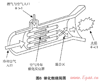 ,一次空氣系數(shù)α<1為富氣,過??諝庀禂?shù)α>1為貧氣。 上述擴(kuò)散火焰燃燒和貧預(yù)混燃燒的特點(diǎn)是:在擴(kuò)散火焰燃燒中,燃?xì)夂涂諝馐怯煞蛛x的通道導(dǎo)入。燃?xì)夂涂諝饬骰旌咸幍幕鹧媸欠€(wěn)定的,在接近Φ=1(或α=1)時(shí),燃燒進(jìn)行得十分迅速,火焰溫度很高,在空氣中足以形成N0x。但貧預(yù)混式燃燒是燃?xì)馀c壓縮空氣預(yù)先混合,過??諝饨档土嘶鹧鏈囟?,是可以避免熱N0x的形成。但燃燒室應(yīng)在當(dāng)量比Φ很小的范圍內(nèi)操作,避免Φ<0.5(α>2)時(shí)的熄火和Φ>0.6(α<1.6)時(shí)NOx的形成。