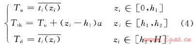 對(duì)于T型結(jié)構(gòu)溫度剖面,其數(shù)學(xué)表達(dá)式為: