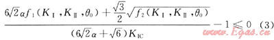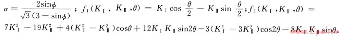 國內(nèi)外學者對裂紋的失穩(wěn)擴展研究取得了豐碩的成果,建立了相應的斷裂準則[6~7]通過適用性分析,筆者選用了基于巖石破壞準則的巖石斷裂判據(jù)[6]。筆者利用D-P破壞準則,并結(jié)合裂紋尖端的應力場、應力強度因子和斷裂韌度提出了該判據(jù),具體推導過程見本文參考文獻[6]。