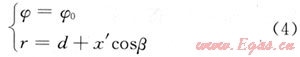 ,裂紋長為2a,O′為裂紋的中點,裂紋的傾角為β,裂紋相對最大水平地應力的方位角為φ0。求出裂紋面上每一點的正應力和剪應力,即可得到應力強度因子;求出裂紋面上每點的應力狀態(tài),即可得到剪應力和正應力;只需求出每點的r和φ,然后代入定向井井周應力計算公式即可得到應力狀態(tài)。根據(jù)假設(shè)可知: