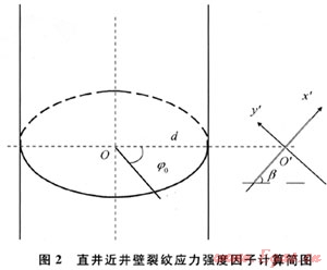 假設(shè):近井壁裂紋擴展的開始是井壁失穩(wěn)的臨界點。即如果存在井壁裂紋的擴展條件,就認為井壁會發(fā)生失穩(wěn)坍塌現(xiàn)象,并且近井壁裂紋擴展的開始,就是井壁失穩(wěn)的開始。根據(jù)此假設(shè),就可以把定量確定裂紋擴展的判據(jù)應用于確定井壁失穩(wěn)。