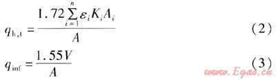 式中qh——建筑耗熱量指標(biāo),W/m2