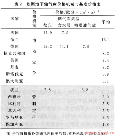 1 國外地下儲氣庫價格機制