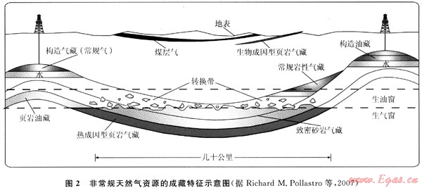 非常規(guī)天然氣資源的成藏特征如圖2所示。