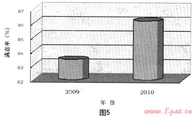 圖5為我公司2009/2010年第三方測(cè)評(píng)抄表業(yè)務(wù)滿意度變化圖。我們從圖5可以看出,自從推廣了一報(bào)一抄抄表模式后,大大減少了入戶次數(shù),抄表擾民系數(shù)降低,得到了廣大用戶的認(rèn)可。由第三方開展的客戶滿意度調(diào)查結(jié)果顯示,2010年的抄表業(yè)務(wù)客戶滿意度從2009年的83.42%提升到86.16%,上升近3個(gè)百分點(diǎn)。