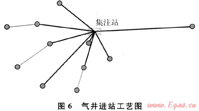 榆林南區(qū)地下儲(chǔ)氣庫注采井為水平井,采用1~5口單井和叢式井相結(jié)合的部署方案,地下儲(chǔ)氣庫氣井進(jìn)站采取串接進(jìn)站工藝,可以避免單井或2口井直接進(jìn)站,減少管線數(shù)量、縮短施工周期和降低工程投資等優(yōu)點(diǎn)。但為了控制管線壁厚不超過30mm,串接井?dāng)?shù)原則上不超過5口。氣井進(jìn)站工藝示意圖如圖6。