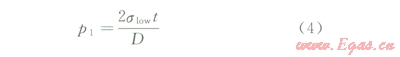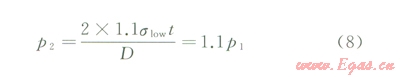 同樣,根據(jù)99%的可靠度,當試壓的等效應(yīng)力達到slow時,實際鋼管可承受的環(huán)向應(yīng)力為1.125slow,小數(shù)圓整后為1.1slow,由此對應(yīng)的強度試壓壓力P2計算公式為: