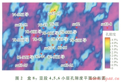 不同的巖相對該區(qū)氣藏在平面上和縱向上的分布具有明顯的控制作用,以河道砂為主的沉積體的孔隙度明顯高于其他巖性,說明其物性相對較好;較細(xì)的河口壩砂巖沉積物性相對較差,同樣含氣的情況下,河道砂巖的氣層厚度明顯大于較細(xì)砂巖沉積的氣層厚度,含氣飽和度也普遍相對較高。這從各小層的儲層參數(shù)平面圖上可以清楚地反映出來。
