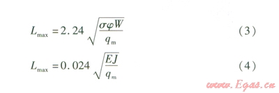 式中Lmax——管道的最大允許跨距,m