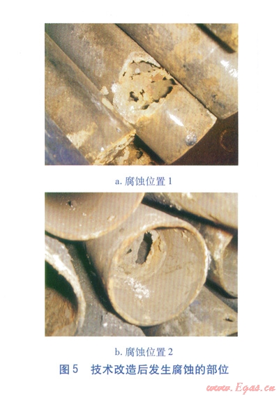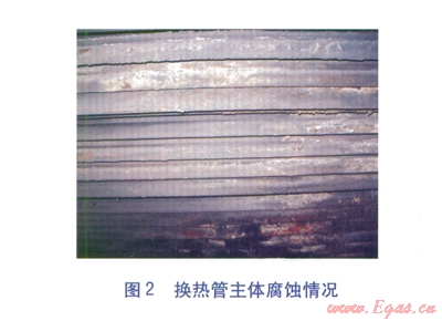 按單純改善換熱管材質(zhì)考慮,當(dāng)換熱管采用20號(hào)鋼時(shí),一組管箱(整體焊接的固定管箱式結(jié)構(gòu))的制造安裝費(fèi)用為2.85×104元。當(dāng)換熱管采用ND鋼時(shí),一組管箱(整體焊接的固定管箱式結(jié)構(gòu))的制造安裝費(fèi)用為6.96×104元。后者的制造安裝費(fèi)用為前者的2.44倍,但使用壽命并未明顯延長,最長為5~10個(gè)月。