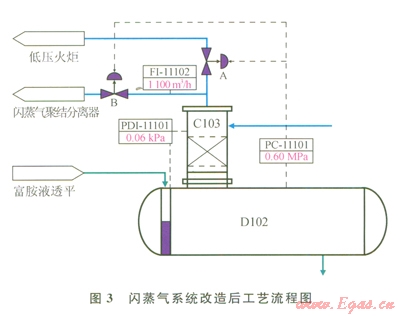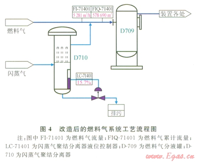 通過以上分析,閃蒸氣作為燃料氣并入燃料氣系統(tǒng)是可行的,但是為了避免燃料氣系統(tǒng)有大的波動(dòng),必須在工藝上改造優(yōu)化。