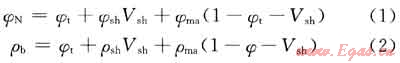 對于石英砂巖儲層的泥質(zhì)含量,可利用自然伽馬曲線按常規(guī)方法計算。但對長石砂巖儲層的泥質(zhì)含量計算,由于含有非泥質(zhì)的高放射性礦物,一般自然伽馬法不能應(yīng)用,為此研究出3種比較有效的方法:①根據(jù)研究區(qū)的長石含量對自然伽馬進(jìn)行校正,再利用常規(guī)方法計算泥質(zhì)含量;②用伽馬能譜測井資料,找出地層中與泥質(zhì)放射性能譜不同的非泥質(zhì)放射性礦物,以選定計算泥質(zhì)含量的放射性能譜成分[2];③用中子-密度交會計算泥質(zhì)含量。如果所取GRmin和GRmax層段的非泥質(zhì)放射性成分與儲層段不一致,又無伽馬能譜測井資料,則可根據(jù)中子和密度測井資料的響應(yīng)方程解出Vsh和φt即